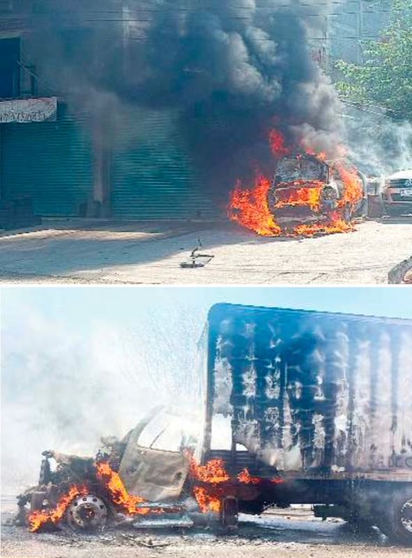In the municipalities of Zihuatanejo and La Unión, armed men set fire to public and private vehicles. Businesses closed, and public transportation was gradually suspended until, after 3:00 p.m., no more Urvan vans were operating in the port city. Meanwhile, in Petatlán, it was reported that most businesses closed for fear of being burned.